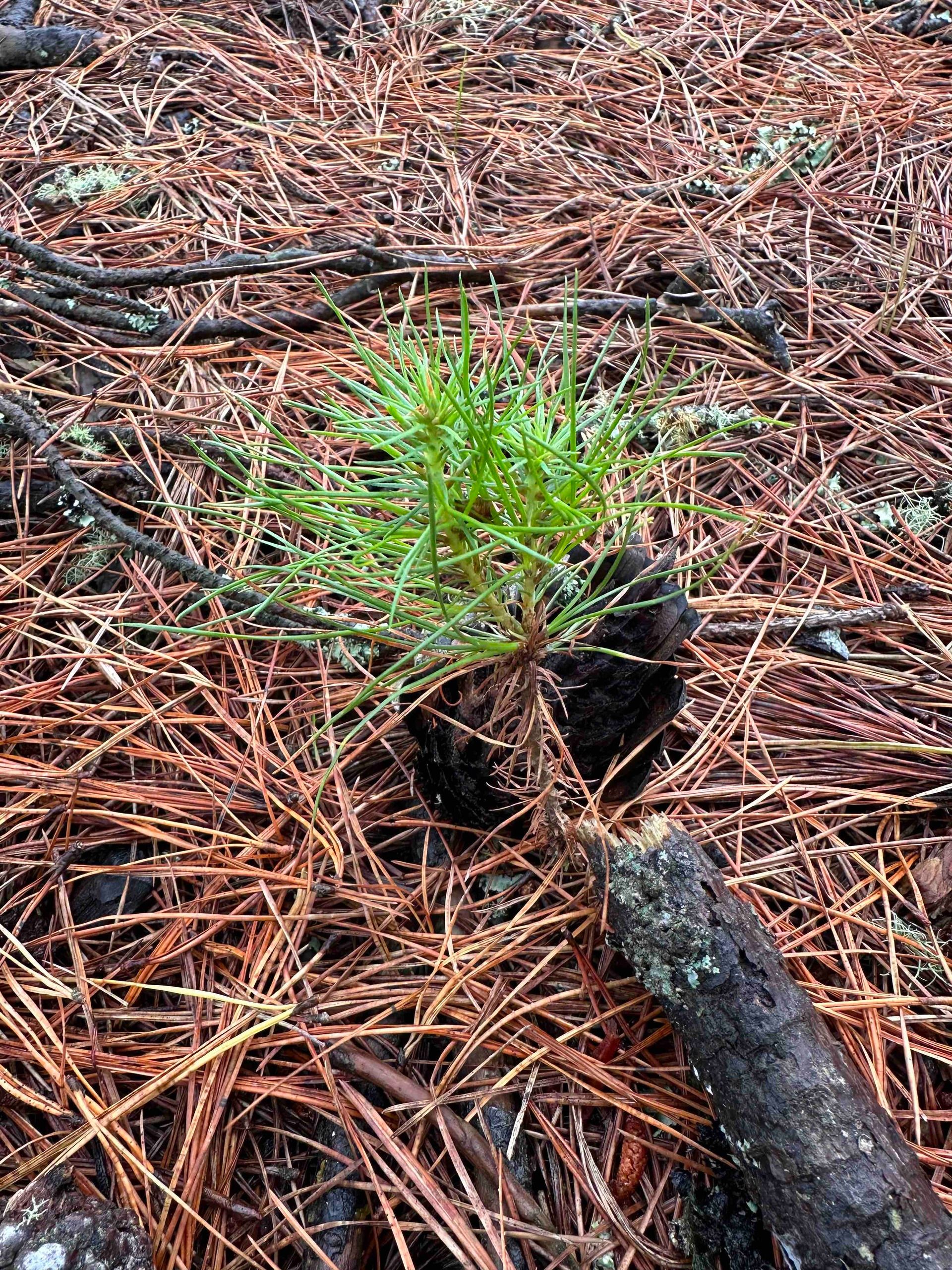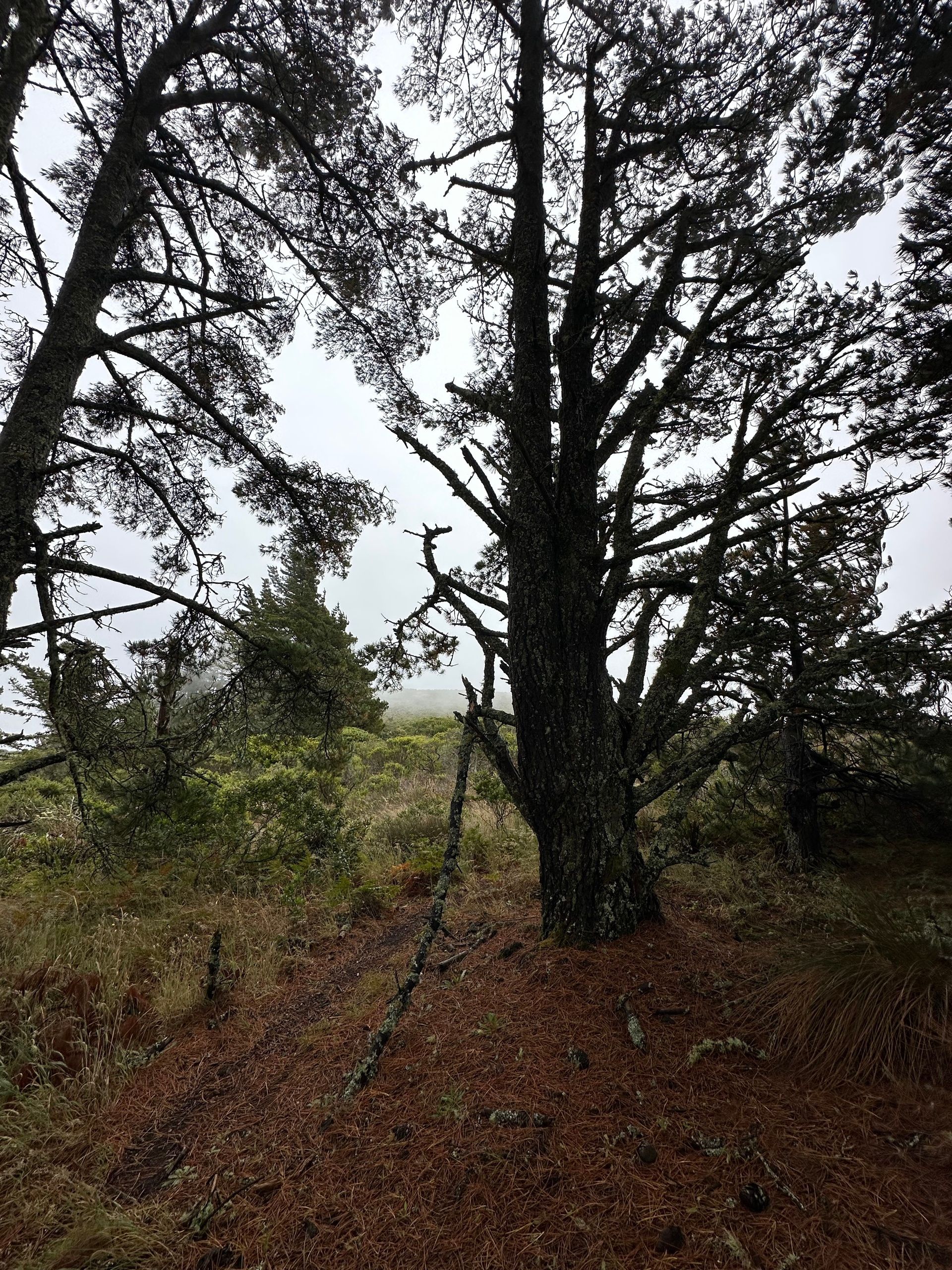 We were in a cloud forest, and it was fecund as fuck up there. Tiny pine seedlings were sprouting everywhere. The fallen branches, dropped logs, snags and stumps were all softening, mossy, returning to the soil. There were birds, the wind was muted, the trail rarely traveled, by humans, anyway. There were hoofprints in the mud ahead of us — probably black-tail deer.