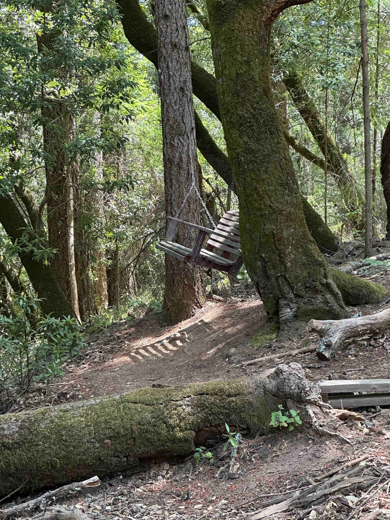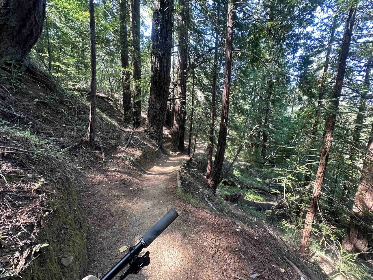I’ve been riding Tamarancho since 2018 and it’s always challenging, every time. And each segment of the park is always a welcome return. Even if the rock garden along the exposed crest of Serpentine trail is boggling — big babyheads, piles of polished boulders, janky rockfalls in twisty, uneven staircases and ramps, and at least one nasty yellowjacket hive — the views of Mt Tam from the north are beyond sublime. The cool, sun-dappled traverse through the redwood canyon as you approach Endor is a dream. Throughout the park the air is full of the sharp tang and loamy mellow of leaf and soil. Cool ocean breezes slip over the hilltops as you crest a ridge. There is birdsong everywhere, and different birds depending on the time of day, just as the sun angles through the trees differently as it travels across the sky from morning to late afternoon.