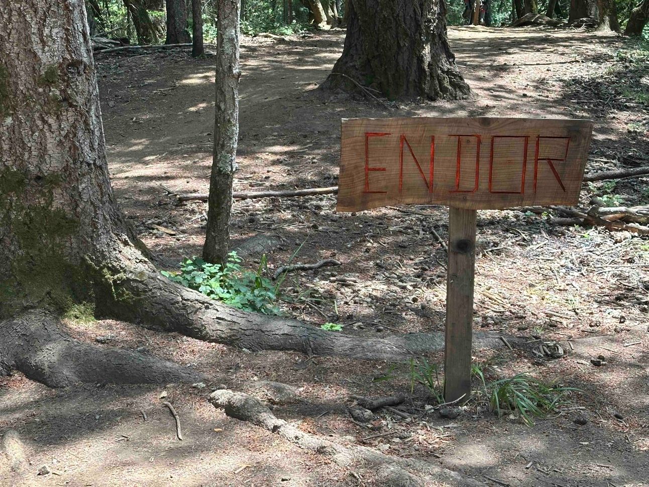 It was also neat to ride the little constructed skills course right adjacent to the Endor entrance … little log runs and narrow boardwalk courses. I did two very nice little runs on the easiest parts of that both times around Tamarancho yesterday. There’s much more challenging stuff in that skills course, but it felt great to manage the baseline.